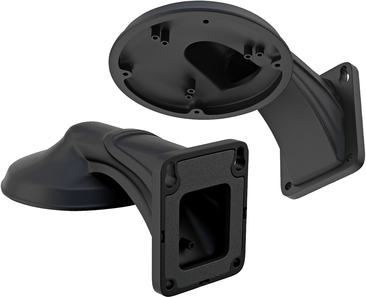 Une caméra dome peut être montée au plafond ou à plat contre le mur et peut être bien orientée dans les deux cas. Cependant, il est parfois préférable que la caméra soit légèrement éloignée du mur, par exemple pour regarder le long d'une gouttière ou d'un autre obstacle. Dans ce cas, un support mural offre une solution élégante.