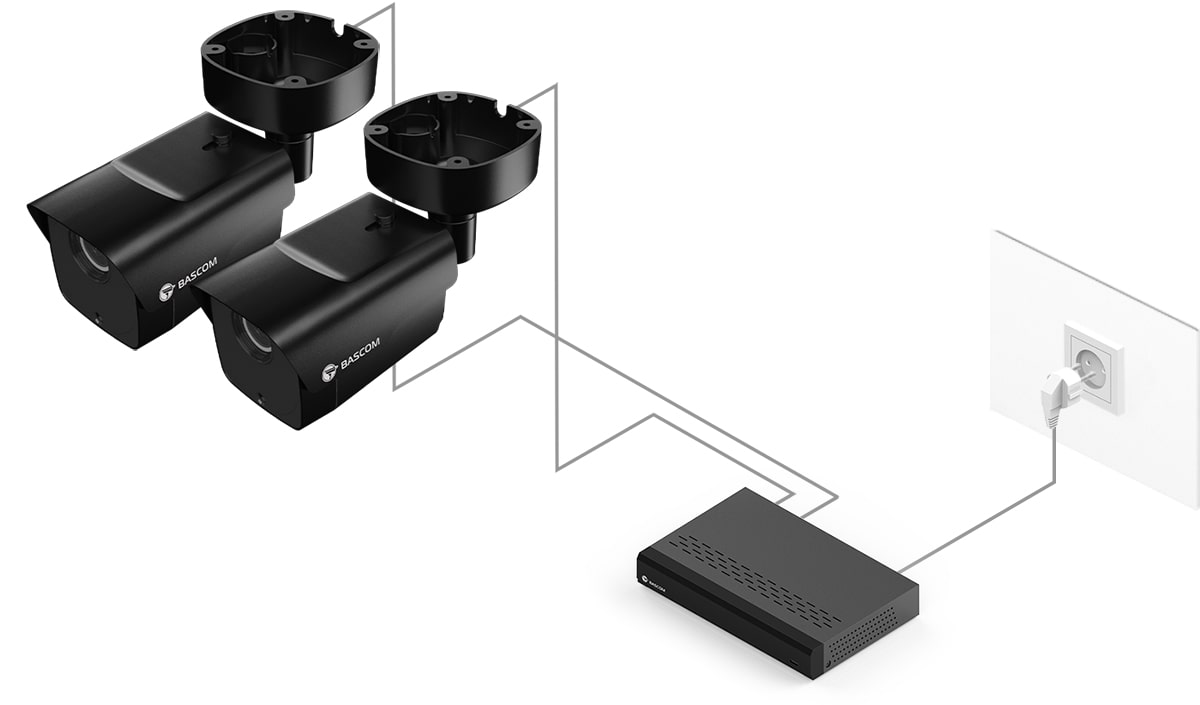 95 % de nos clients n’avaient jamais installé de système de vidéosurveillance auparavant, mais ont pu installer ce système Bascom eux-mêmes. Fixez les caméras au mur ou au plafond, branchez-les et le système fonctionne.