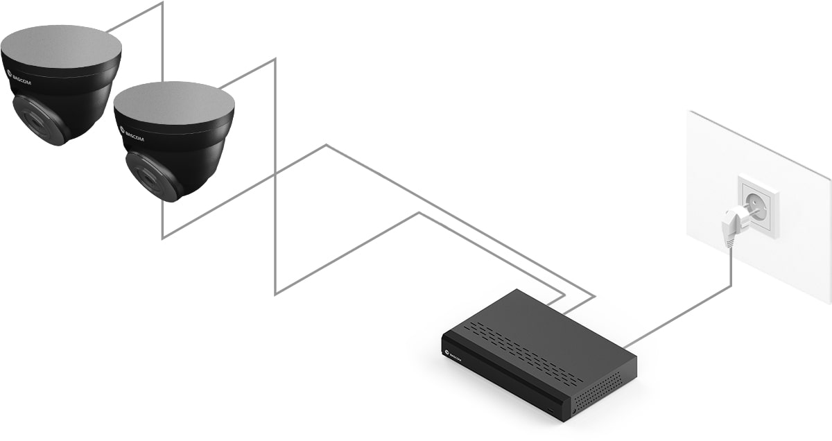 Découvrez la simplicité du Power over Ethernet (PoE), une technologie innovante qui permet de connecter chaque caméra à l’aide d’un seul câble. Ce câble transmet les images vers l’enregistreur, tout en fournissant simultanément l’alimentation électrique à la caméra. Aucun point de courant n’est nécessaire à proximité.